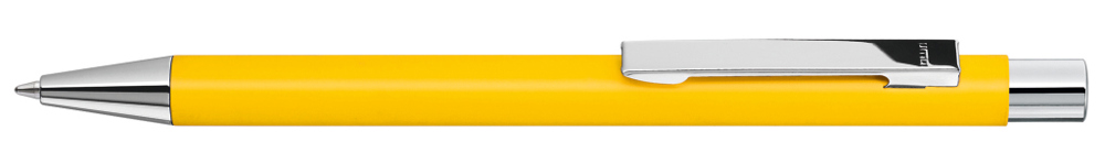 Metall-Druckkugelschreiber mit mattem Gehäuse. Metallclip, Metallspitze und Drücker silber glänzend.