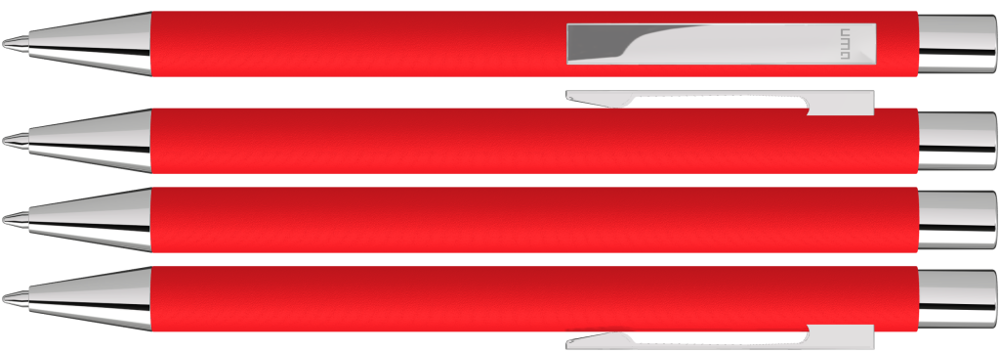 Metall-Druckkugelschreiber mit mattem Gehäuse. Metallclip, Metallspitze und Drücker silber glänzend. mehr