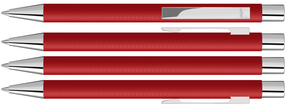Metall-Druckkugelschreiber mit mattem Gehäuse. Metallclip, Metallspitze und Drücker silber glänzend.