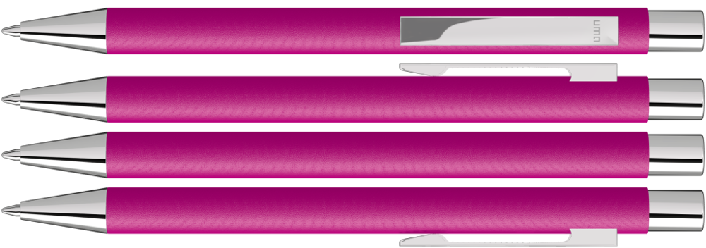 Metall-Druckkugelschreiber mit mattem Gehäuse. Metallclip, Metallspitze und Drücker silber glänzend. mehr