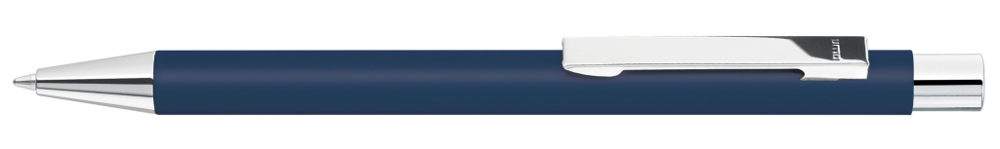 Metall-Druckkugelschreiber mit mattem Gehäuse. Metallclip, Metallspitze und Drücker silber glänzend. mehr
