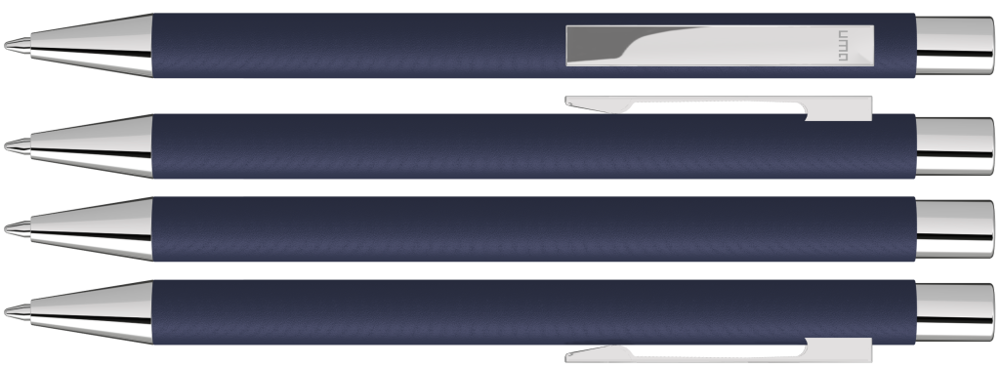 Metall-Druckkugelschreiber mit mattem Gehäuse. Metallclip, Metallspitze und Drücker silber glänzend.
