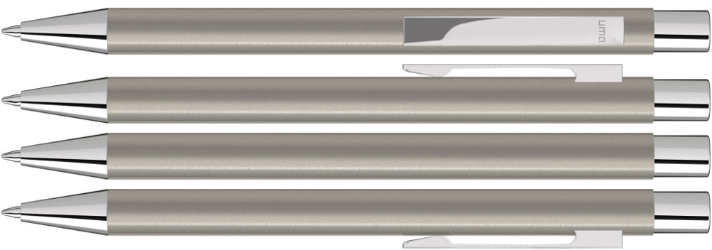 Metall-Druckkugelschreiber mit mattem Gehäuse. Metallclip, Metallspitze und Drücker silber glänzend. mehr