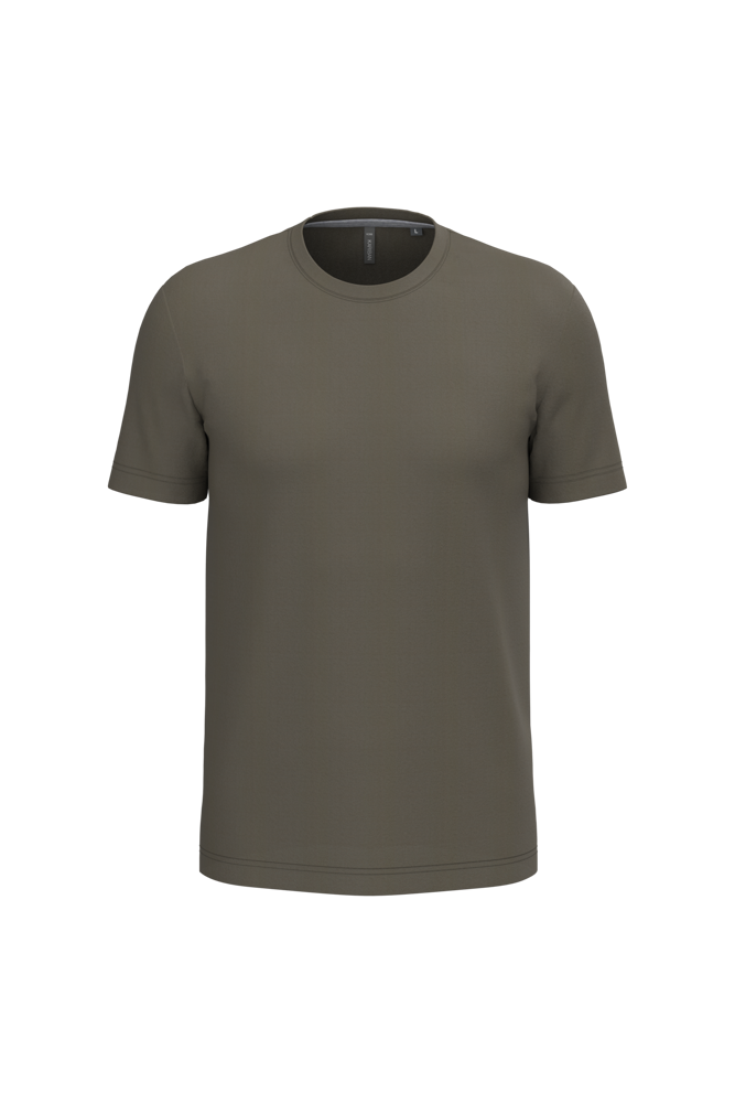 100% gekämmte Baumwolle, Enzymwäsche veredelt (Oxford Grey : 90 % Baumwolle /10 % Viskose). Gerader Schnitt. Nackenband (Oxford Grey bei farbigen Shirts, White bei weißen Shirts, Dark Grey bei Shirts in Oxford Grey). Doppelnähte an Ärmeln und Saum.