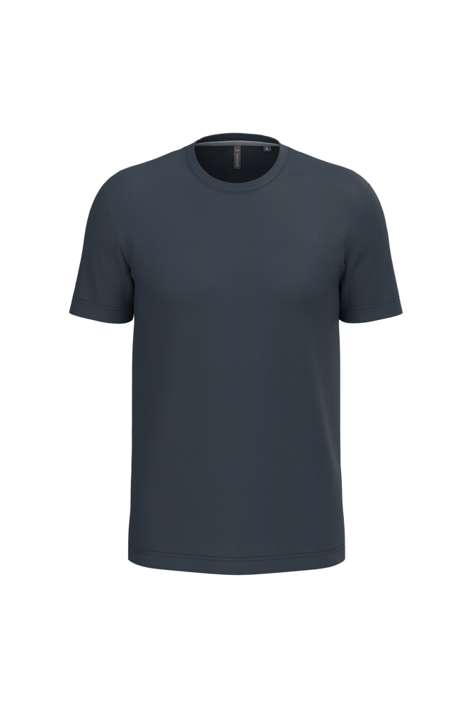100% gekämmte Baumwolle, Enzymwäsche veredelt (Oxford Grey : 90 % Baumwolle /10 % Viskose). Gerader Schnitt. Nackenband (Oxford Grey bei farbigen Shirts, White bei weißen Shirts, Dark Grey bei Shirts in Oxford Grey). Doppelnähte an Ärmeln und Saum.