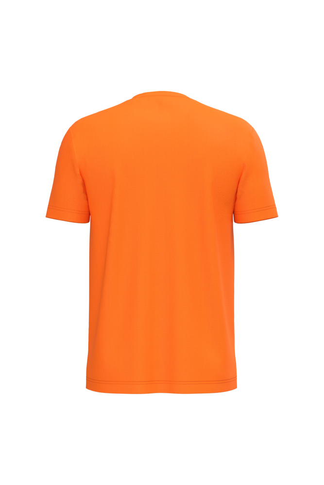 100% gekämmte Baumwolle, Enzymwäsche veredelt (Oxford Grey : 90 % Baumwolle /10 % Viskose). Gerader Schnitt. Nackenband (Oxford Grey bei farbigen Shirts, White bei weißen Shirts, Dark Grey bei Shirts in Oxford Grey). Doppelnähte an Ärmeln und Saum.