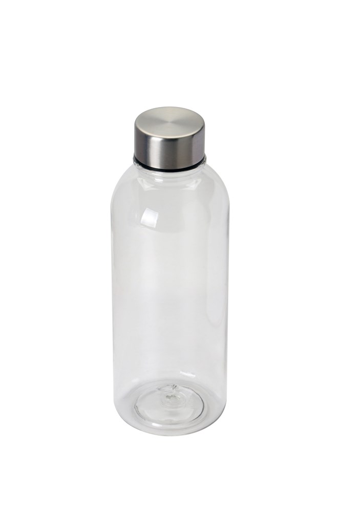 Flasche aus recyceltem PET mit Edelstahlverschluss.