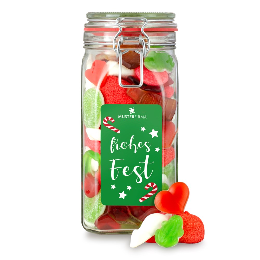 Das große Bügelglas für die große Freude. Wer etwas Besonderes schenken möchte, ist hier genau richtig. Auffällig, süß, einmalig. Und von allem etwas drin.