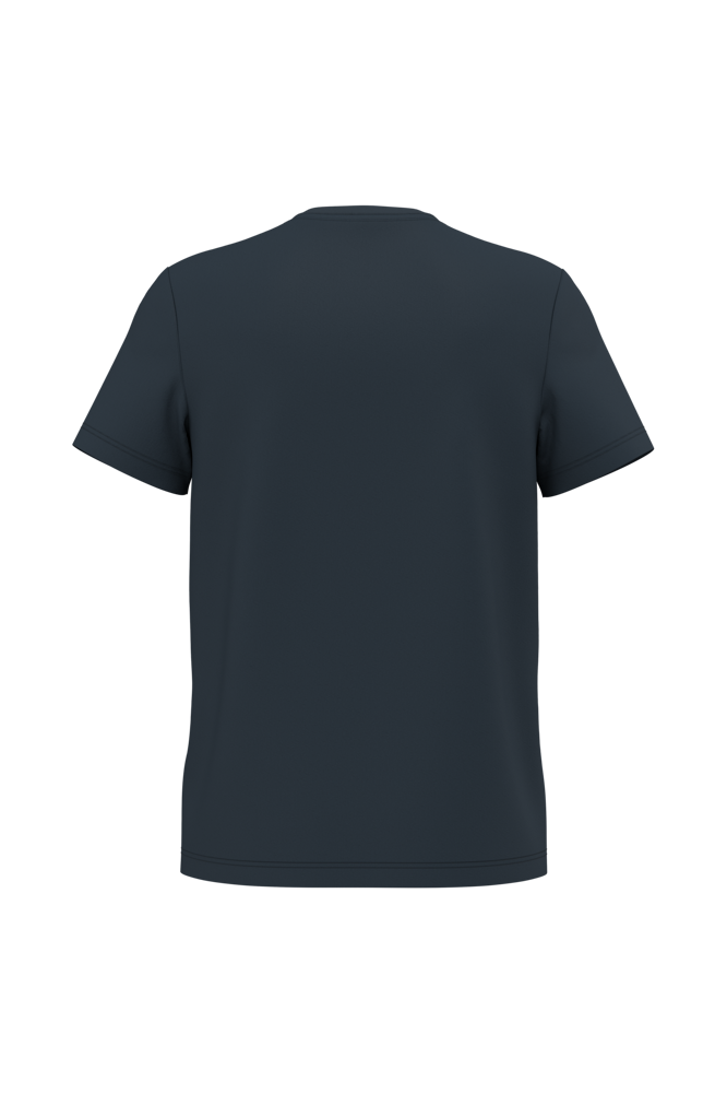 65 % recyceltes Polyester / 35 % gekämmte Baumwolle. Jersey-Stoff, gestrickt mit VORTEX-Garn, das die Festigkeit und Haltbarkeit der Faser erhöht (Anti-Pilling) bei den einfarbigen Varianten. Jersey-Strick bei der Version in der Farbe Oxford Grey. Enzymwäsche. Antibakterielle Behandlung. Bei 60 °C waschbar. Gerader Schnitt. V-Ausschnitt mit 1x1-Rippstrick. Inneres Nackenband aus kontrastierendem Jersey. Saum an den Ärmelenden und am Saum des Kleidungsstücks mit Doppelnaht. Abtrennbares Marken-Label.