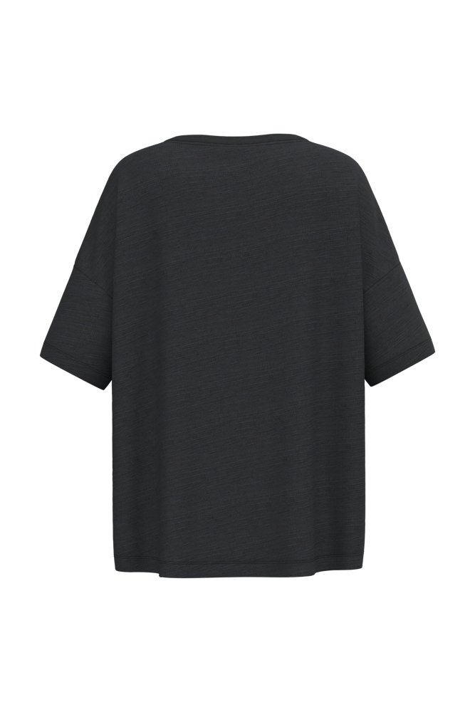 100 % Bio-Baumwolle. Gekämmte Baumwolle. Jersey-Strick in Flammoptik. Oversized-Schnitt mit überschnittener Schulterpartie. Enzymwäsche. Seitennähte. Rundhalsausschnitt mit 1x1-Rippstrickbündchen. Schulterverstärkung. Innenseite des Kragens mit einem Nackenband aus tonalem Hauptmaterial. Doppel-Ziernaht an Ärmelbündchen und unterem Saum.