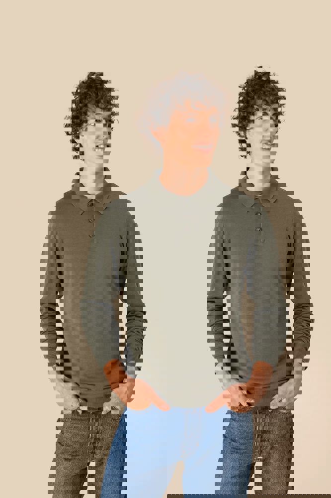 100 % Bio-Baumwolle. Gekämmte Baumwolle. 12 gg Strick. Gerader Schnitt. Knopfleiste mit 3 Knöpfen. Farblich abgesetzte Knöpfe aus recyceltem Kunststoff mit Horn-Optik Kragen, Ärmelbündchen und unterer Saum mit Strickbündchen 1 x 1. Innenseite des Kragens mit einem Nackenband aus tonalem Hauptmaterial. „Fully Fashion“-Strick. Anti-Pilling-Behandlung. Artikelgewicht in Größe L: 270 g.