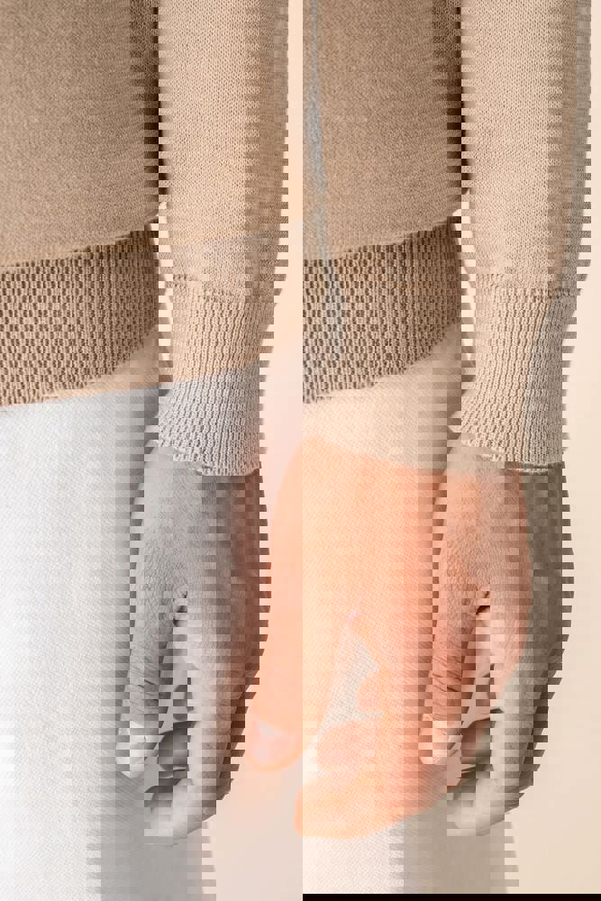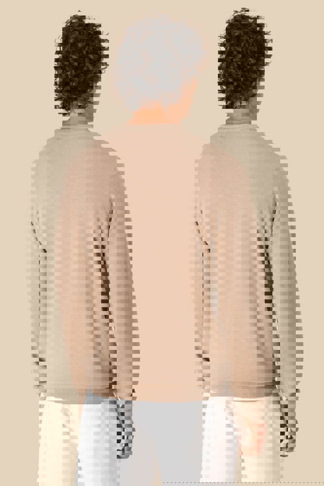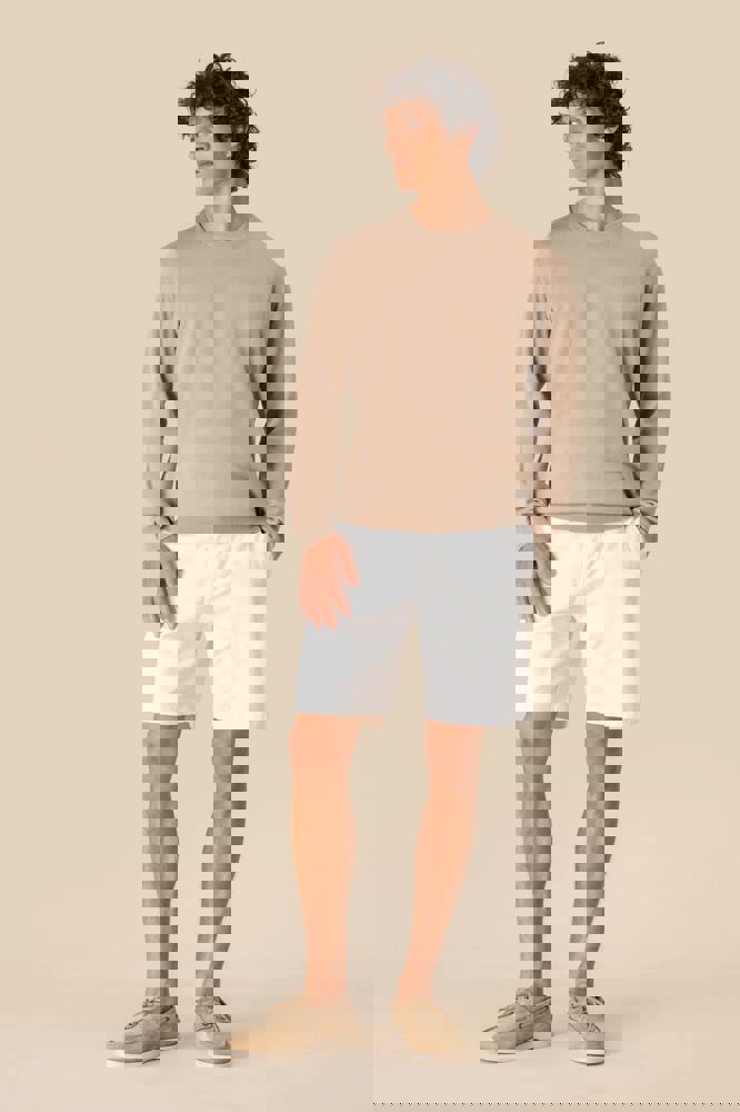 100 % Bio-Baumwolle. Gekämmte Baumwolle. 12 gg Strick. Gerader Schnitt. 1 x 1-Rippstrick am Kragen, am Saum und an den Ärmelenden. Formstrick „Fully Fashion“. Anti-Pilling-Behandlung. Innenseite des Kragens mit einem Nackenband aus tonalem Hauptmaterial. Durchschnittliches Gewicht bei Größe L: 270 g.
