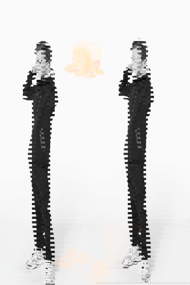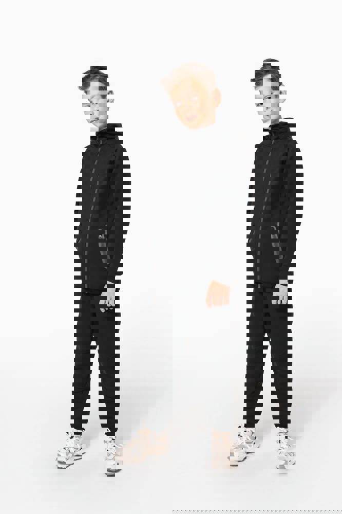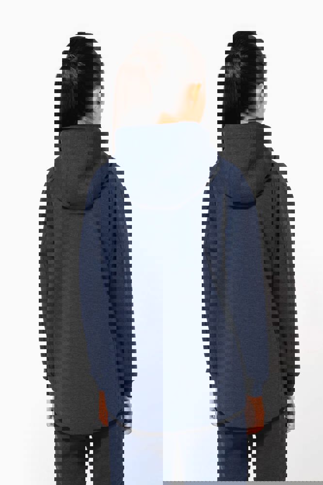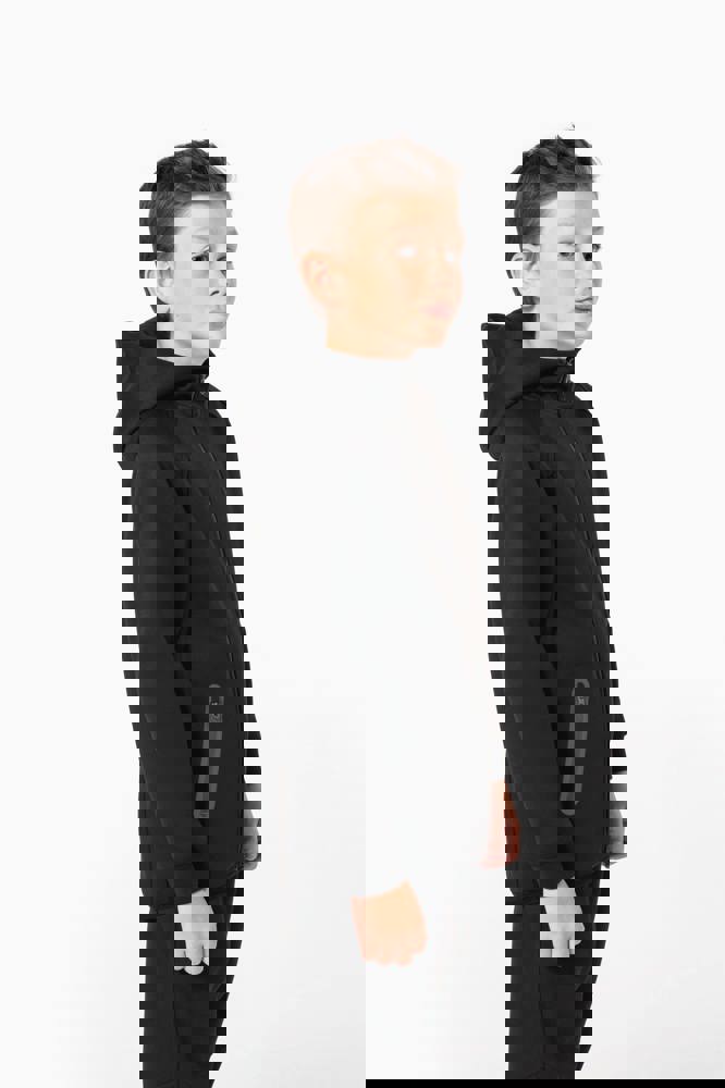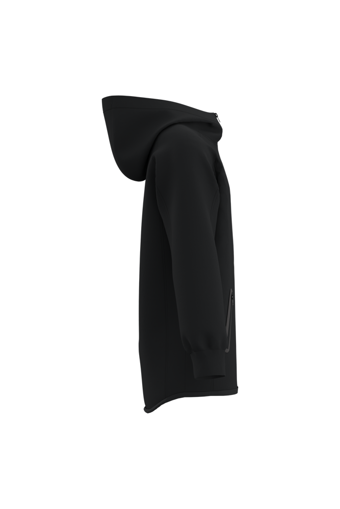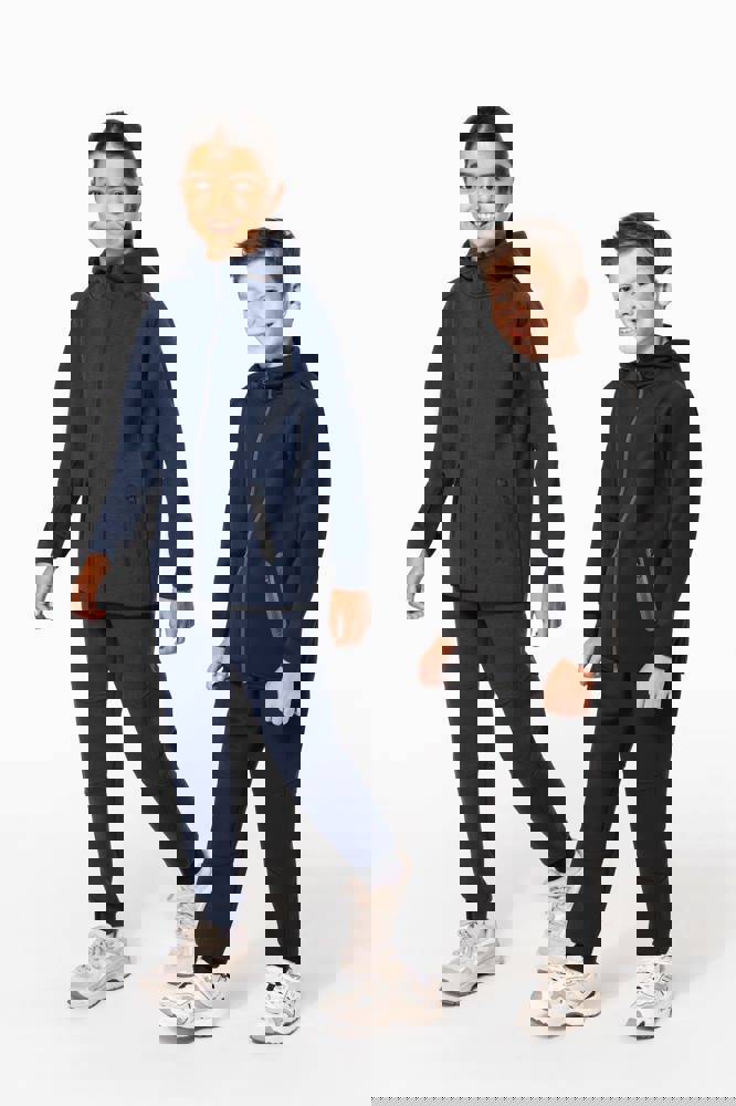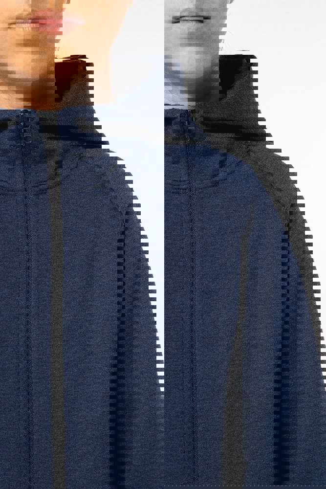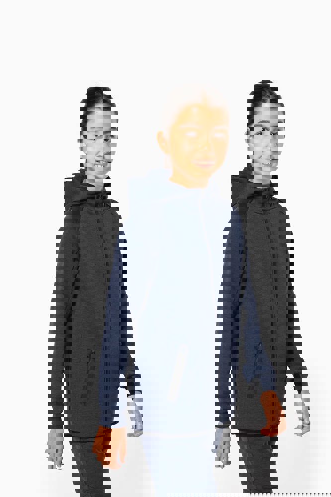 94% Polyester / 6% Elasthan (79% Polyester / 15% Viskose / 6% Elasthan bei der melierten Farbe). Ultrabequemes Material. Gerader Schnitt. Reißverschluss. 2 Vordertaschen mit Reißverschluss und thermogeschweißter Verarbeitung. Kapuze mit Jersey gefüttert (65% Polyester / 35% Viskose). Ärmelabschlüsse mit kontrastierendem Gummizug und Saum mit kontrastierendem Schrägband. Kontrastierender Verschluss. Kontrastierende Teile in Black bei allen Farben und Dark Grey bei Ash Heather.