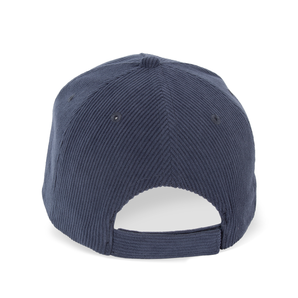 100% Polyester. 5-Panel-Kappe aus Polyestercord. Gebogenes Schild. Verstellbarer Klettverschluss.