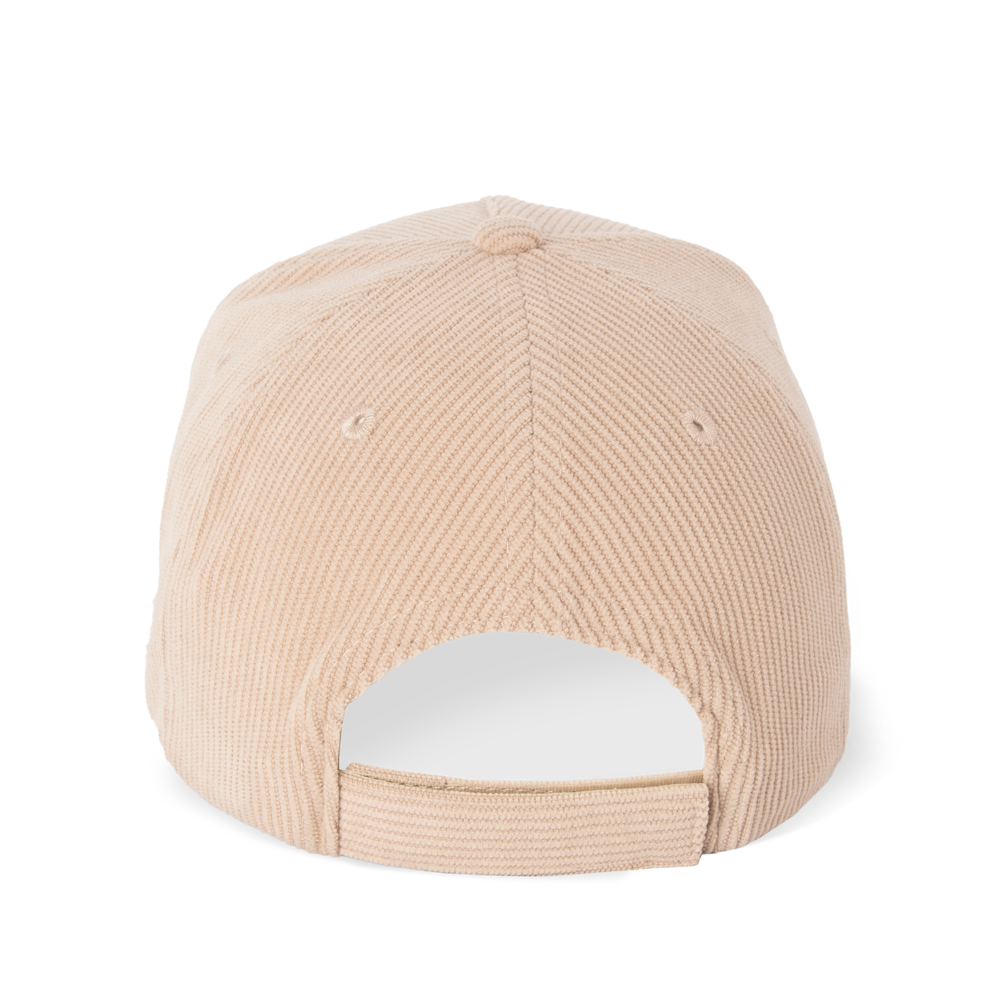 100% Polyester. 5-Panel-Kappe aus Polyestercord. Gebogenes Schild. Verstellbarer Klettverschluss.