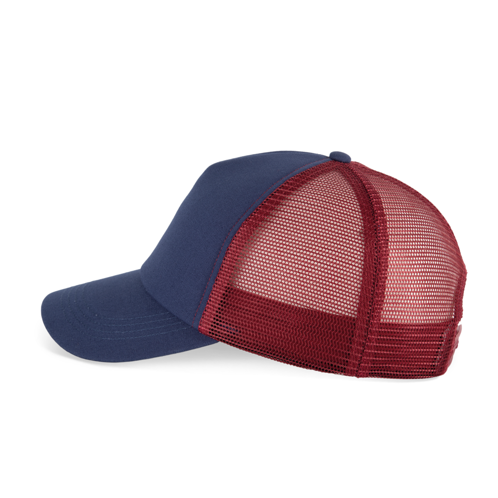 100% Baumwolle. 5-Panel-Kappe. Die K-up Gold Label-Kollektion zeichnet sich durch hochwertige Materialien und Verarbeitungen aus. Frontpanel aus Canvas-Baumwolle mit Schaumstoffstruktur und Innenfutter aus Baumwolle. Gestepptes Schrägband aus Baumwoll-Twill mit 3 Steppnähten. Rückenteil aus 100 % Polyester-Mesh mit Snapback-Verschluss. Tear-away-Etikett, das in die Innenseite des Vorderteils eingenäht ist.