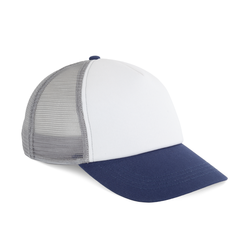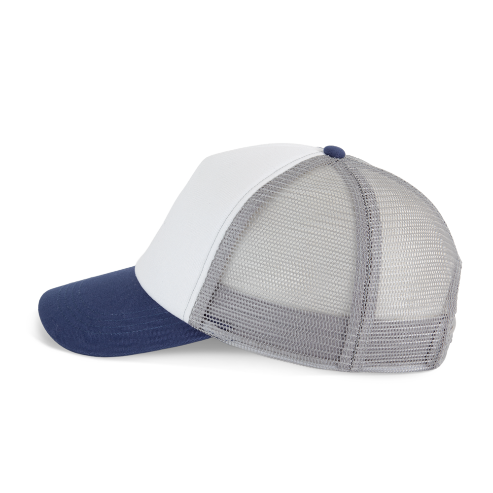 100% Baumwolle. 5-Panel-Kappe. Die K-up Gold Label-Kollektion zeichnet sich durch hochwertige Materialien und Verarbeitungen aus. Frontpanel aus Canvas-Baumwolle mit Schaumstoffstruktur und Innenfutter aus Baumwolle. Gestepptes Schrägband aus Baumwoll-Twill mit 3 Steppnähten. Rückenteil aus 100 % Polyester-Mesh mit Snapback-Verschluss. Tear-away-Etikett, das in die Innenseite des Vorderteils eingenäht ist.