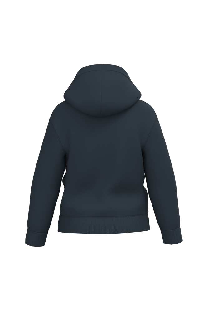 50% ringgesponnene Baumwolle / 50% recyceltes Post-Consumer-Polyester. Gebürstetes Molton. Gerader Schnitt. Geschnitten und genäht. Enzymwäsche. Schlauchförmige 2x1-Rippenbündchen für einen besseren Abschluss am Kragen, an den Ärmelenden und am Saum. Doppelte Ziernähte an Schultern, Armlöchern, unterem Saum und Ärmelabschluss. Kängurutaschen. Kapuze mit Jersey gefüttert. Ton-in-Ton-Jerseystreifen an der Innenseite des Kragens. Kein Markenetikett am Halsausschnitt, nur Größenangabe, zur einfacheren Veredelung.