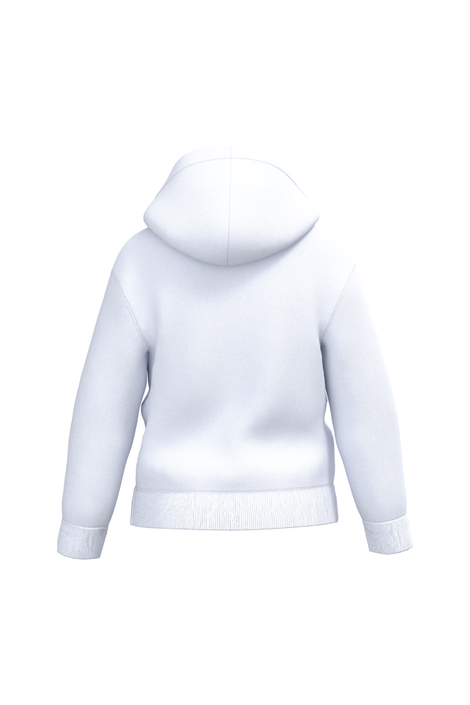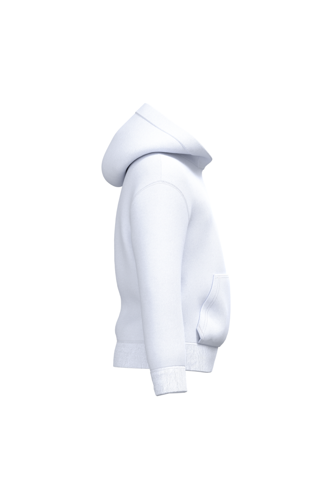 50% ringgesponnene Baumwolle / 50% recyceltes Post-Consumer-Polyester. Gebürstetes Molton. Gerader Schnitt. Geschnitten und genäht. Enzymwäsche. Schlauchförmige 2x1-Rippenbündchen für einen besseren Abschluss am Kragen, an den Ärmelenden und am Saum. Doppelte Ziernähte an Schultern, Armlöchern, unterem Saum und Ärmelabschluss. Kängurutaschen. Kapuze mit Jersey gefüttert. Ton-in-Ton-Jerseystreifen an der Innenseite des Kragens. Kein Markenetikett am Halsausschnitt, nur Größenangabe, zur einfacheren Veredelung.