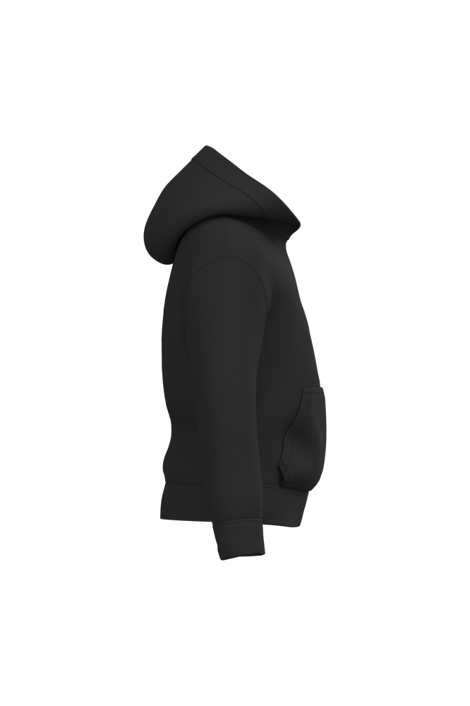 50% ringgesponnene Baumwolle / 50% recyceltes Post-Consumer-Polyester. Gebürstetes Molton. Gerader Schnitt. Geschnitten und genäht. Enzymwäsche. Schlauchförmige 2x1-Rippenbündchen für einen besseren Abschluss am Kragen, an den Ärmelenden und am Saum. Doppelte Ziernähte an Schultern, Armlöchern, unterem Saum und Ärmelabschluss. Kängurutaschen. Kapuze mit Jersey gefüttert. Ton-in-Ton-Jerseystreifen an der Innenseite des Kragens. Kein Markenetikett am Halsausschnitt, nur Größenangabe, zur einfacheren Veredelung.