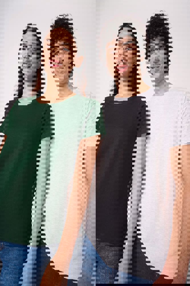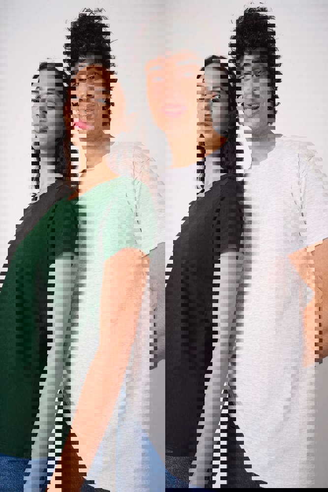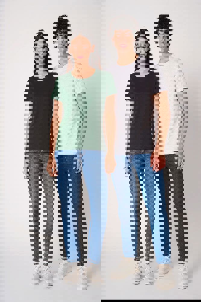 Uni-Farben: 100 % Baumwolle. Farbe Ideal Ash Heather: 99 % Baumwolle / 1 % Viskose. Farbe Ideal Oxford Grey: 90 % Baumwolle / 10 % Viskose. Schlauchware aus Jersey. Gerader Schnitt. Rundhalsausschnitt mit 1x1-Rippstrick und Doppelnähten. Nackenband Ton-in-Ton. Doppelnähte an Ärmel- und Saumabschlüssen. Abreißbares Markenetikett.