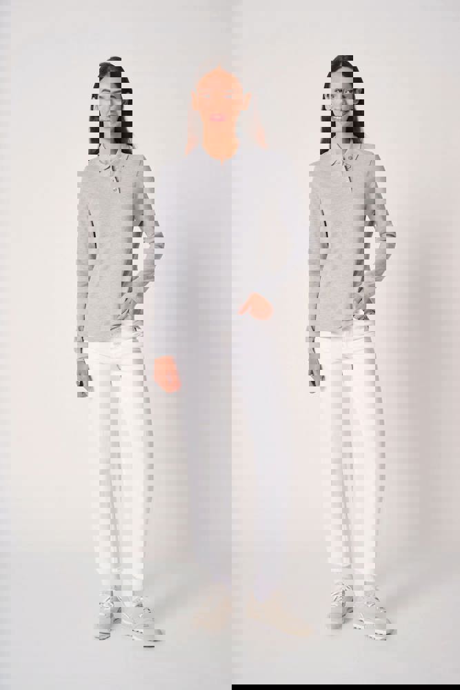 Uni-Farben: 100 % Baumwolle. Farbe Ideal Oxford Grey: 90 % Baumwolle / 10 % Viskose. Piqué-Gewebe. Gerader Schnitt. Kragen und Ärmelabschlüsse mit 1x1-Rippstrick. Knopfleiste mit 4 Ton-in-Ton-Knöpfen. Nackenband Ton-in-Ton. Seitenschlitze. Saumabschluss mit Doppelnähten. Abreißbares Markenetikett.
