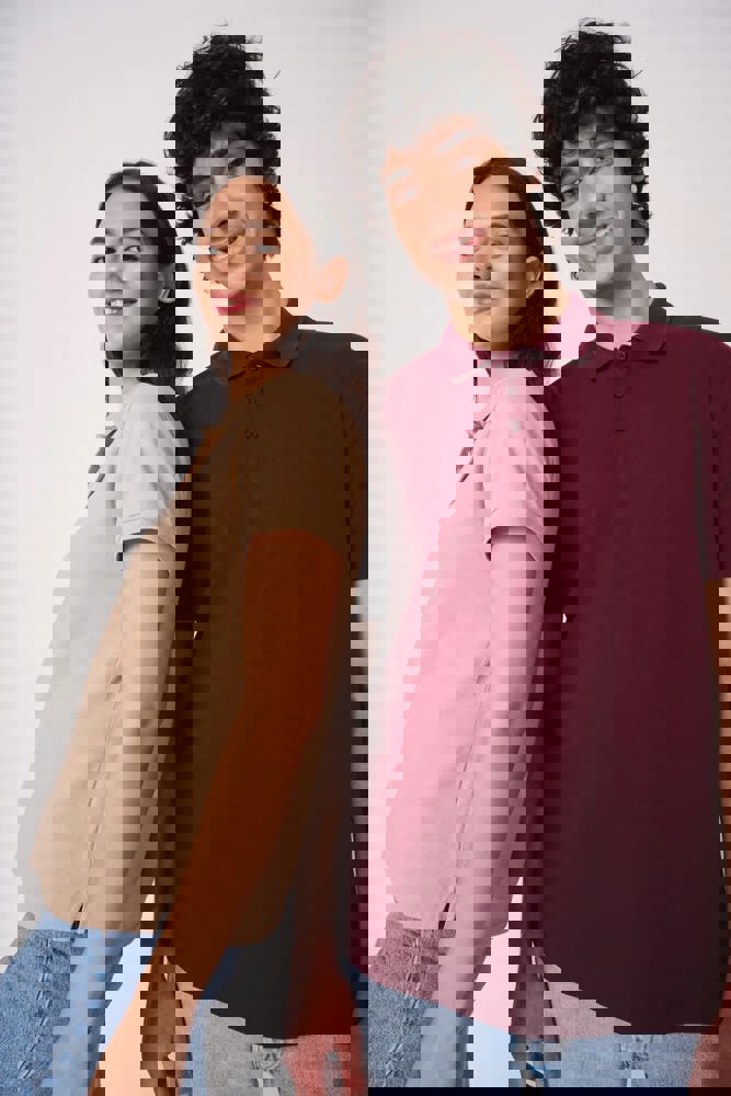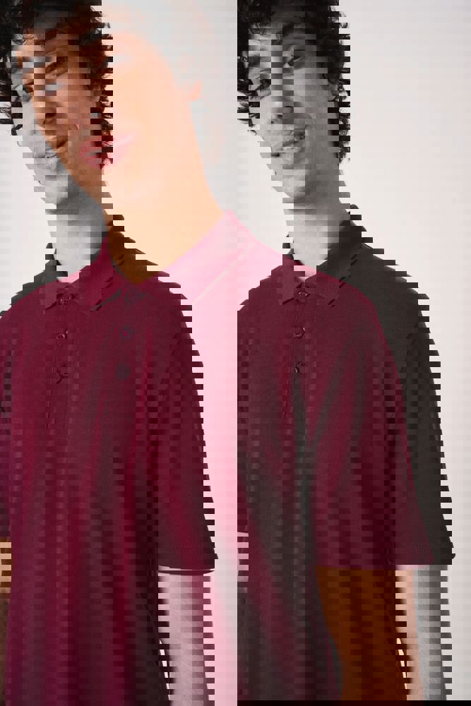 Uni-Farben: 100 % Baumwolle. Farbe Ideal Oxford Grey: 90 % Baumwolle / 10 % Viskose. Piqué-Gewebe. Gerader Schnitt. Kragen mit 1x1-Rippstrick. Knopfleiste mit 3 Ton-in-Ton-Knöpfen. Nackenband Ton-in-Ton. Seitenschlitze. Doppelnähte an Ärmel- und Saumabschlüssen. Abreißbares Markenetikett.