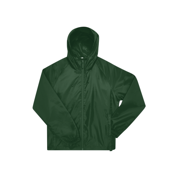 100 % recyceltes Polyester. Wasserfest dank wasserabweisender DWR-Beschichtung (Durable Water Repellent). Raglanärmel, verstellbare Sturmkapuze und halbelastische Ärmelbündchen. 2 Reißverschlusstaschen auf der Vorderseite.