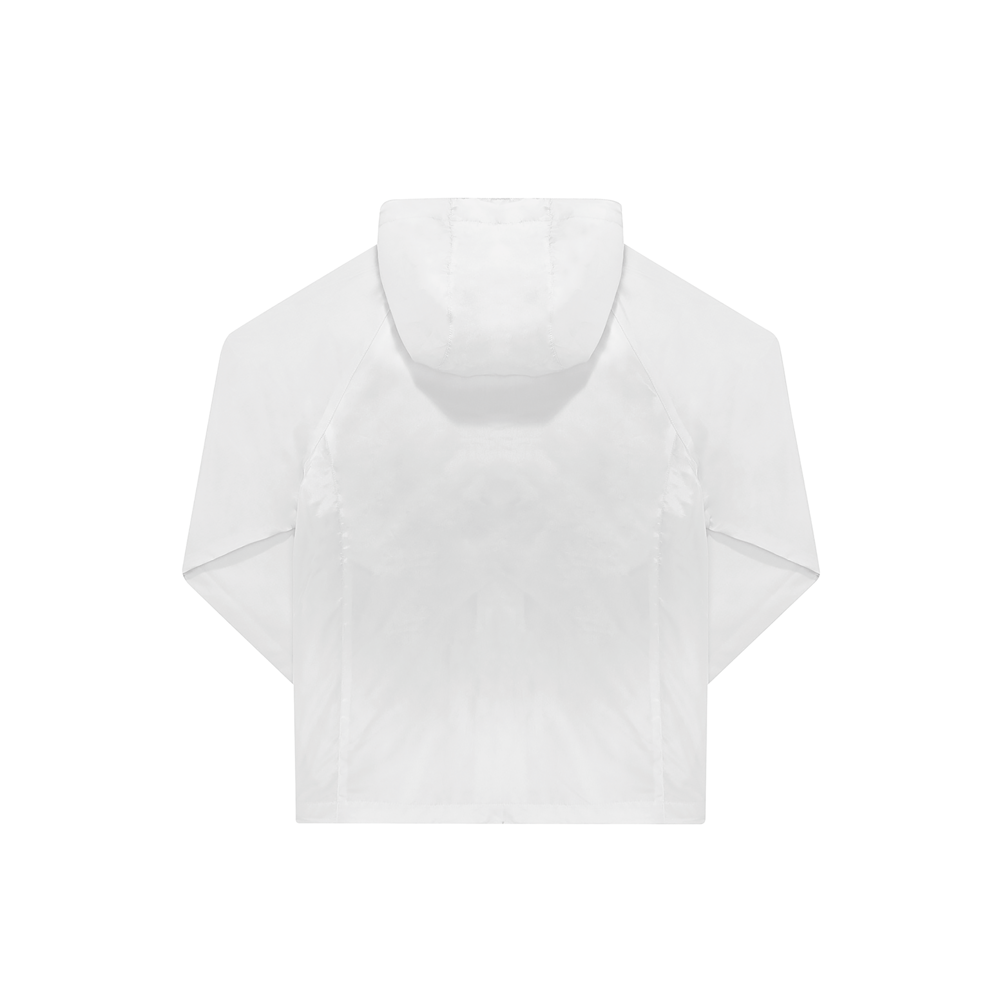 100 % recyceltes Polyester. Wasserfest dank wasserabweisender DWR-Beschichtung (Durable Water Repellent). Raglanärmel, verstellbare Sturmkapuze und halbelastische Ärmelbündchen. 2 Reißverschlusstaschen auf der Vorderseite.