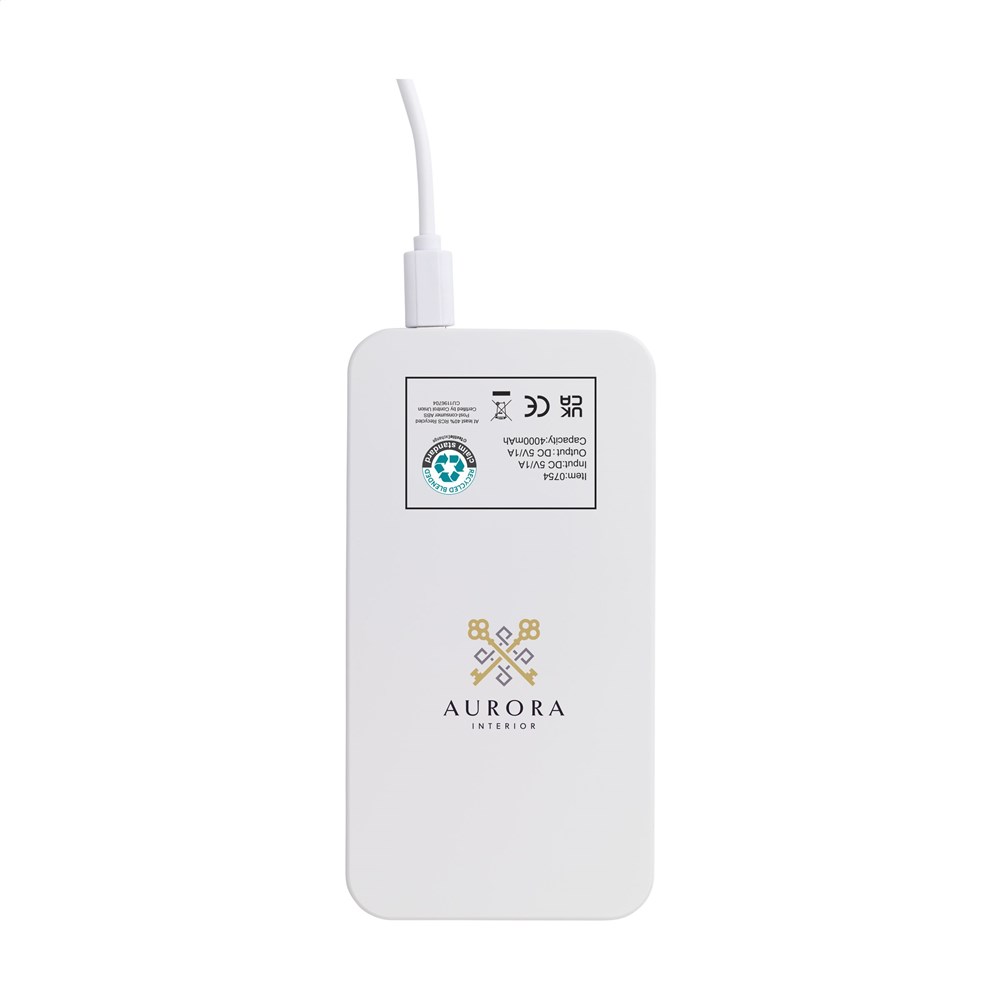 Leistungsstarkes Notladegerät mit hoher Ladekapazität mit Solarmodul und eingebautem wiederaufladbarem Polymerakku (4000 mAh). Kann mit Solarenergie oder Netzstrom (über USB-Anschluss) aufgeladen werden. Das Gehäuse ist aus recyceltem ABS gefertigt. Eingang: 5V/1A. Ausgang: 5V/1A. Inklusive Ladekabel mit USB-C-Anschluss, USB-C-Stecker und Gebrauchsanweisung. RCS-zertifiziert. Gesamtes recyceltes Material: 40%. Verpackt pro Stück.