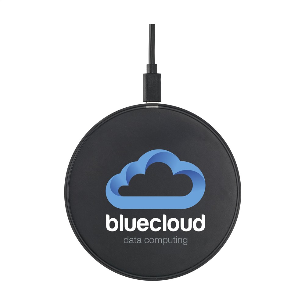 Kabelloses 10-W-Ladegerät Das Gehäuse ist aus recyceltem ABS-Kunststoff gefertigt. Kompatibel mit allen mobilen Geräten, die das drahtlose QI-Laden unterstützen (Androids und iPhones der neuesten Generation ab 8 oder höher). Eingang: 9 V/1,1 A. Drahtloser Ausgang: 9 V/1,1 A 10 W. Inklusive USB-C/USB-C-Ladekabel und Gebrauchsanweisung. Das Produkt und das Zubehör sind PVC-frei. RCS-zertifiziert. Recyceltes Material insgesamt: 20%. Verpackt pro Stück.