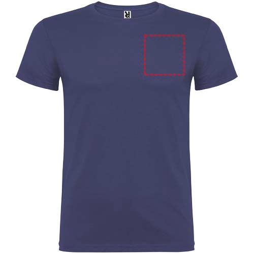 Kurzärmeliges T-Shirt mit doppellagigem Rundhalsausschnitt aus Elasthan, hergestellt aus schlauchförmigem Material für Erwachsene. Verstärkte und verdeckte Nähte am Kragen. Herausnehmbares Etikett. Das Modell ist 190 cm groß und trägt Größe L.