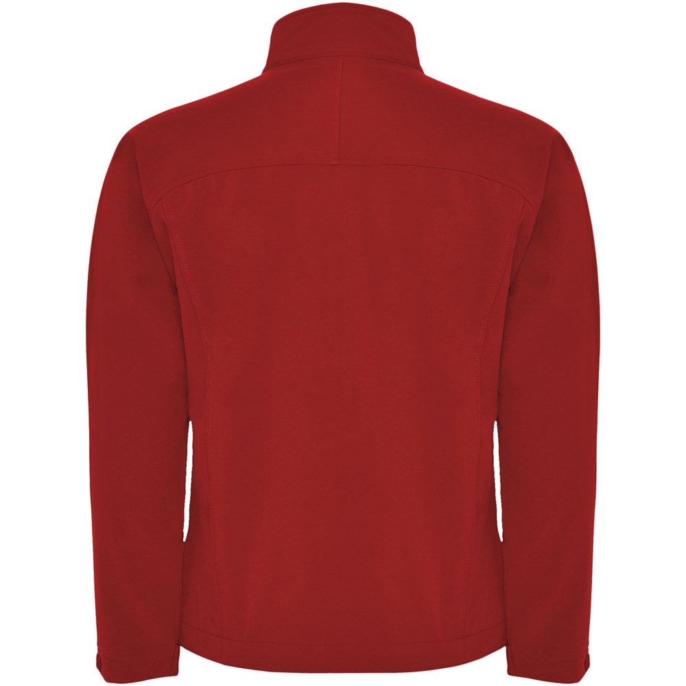 3-lagige Softshell-Jacke: Durchgehender Reißverschluss mit Kinnschutz und Zipper. Außentasche auf der Brust mit Reißverschluss und Zipper. Außentaschen mit Reißverschluss und Zipper. Klettverschlüsse an den Ärmelbündchen. Ausschnitt oder Paspel auf der Vorderseite der Brust. Ausschnitt oder vorgeformter Einsatz am Rücken. Saum mit elastischer Kordel und verstellbaren Stoppern innen. 1000 mm Wassersäule. Winddicht. Das Modell ist 184 cm groß und trägt Größe L.