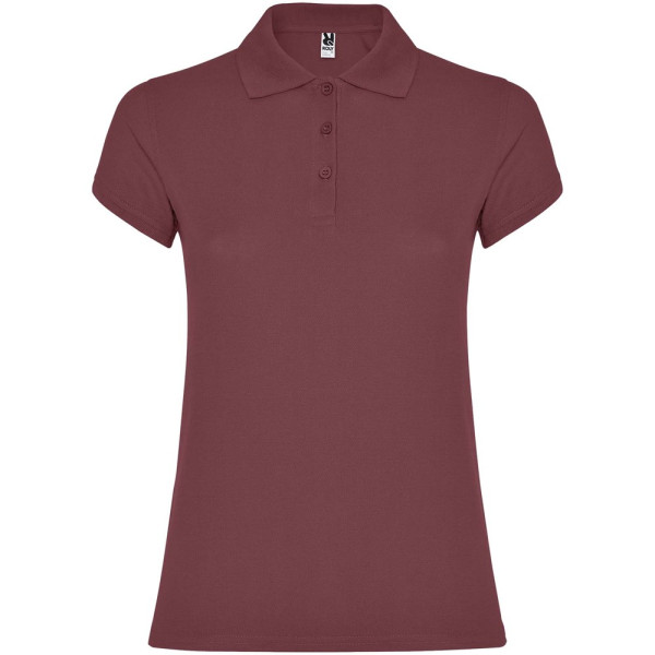 Kurzärmeliges Poloshirt für Damen. Verstärkte und verdeckte Nähte am Innenkragen. 1x1 Rippstrickbündchen an Ärmeln und Kragen. Seitennähte. 3-Knopfleiste und Seitenschlitze. Optionale Tasche. Herausnehmbares Etikett. Das Modell ist 179 cm groß und trägt Größe S.