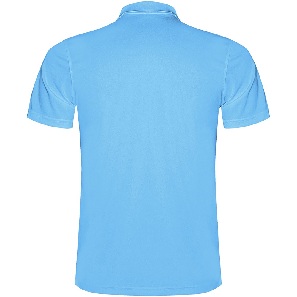 Kurzärmeliges Funktions-Poloshirt. Gestrickter Kragen mit 3-Knopfleiste. Atmungsaktives, leicht zu waschendes und zu trocknendes Material. Herausnehmbares Etikett. Technisches Gewebe. Atmungsaktiver Stoff.