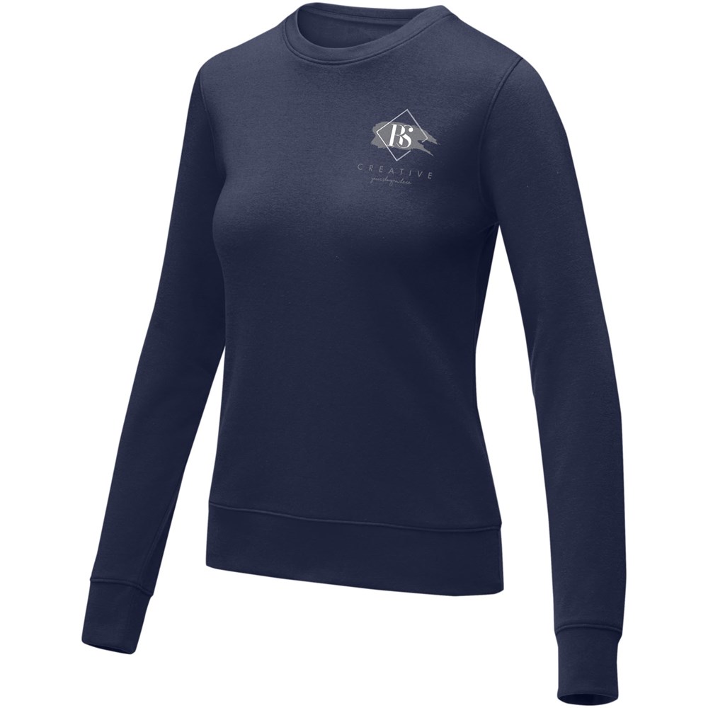 Der Zenon Damenpullover mit Rundhalsausschnitt kombiniert Komfort mit einem klassischen Design. Hergestellt aus einer 240 g/m² schweren Mischung aus Baumwolle und Polyester. Der klassische Rundhalsausschnitt wird durch flach gestrickte Rippdetails am Kragen, an den Ärmelbündchen und am unteren Saum akzentuiert, die für einen bequemen Sitz und einen Hauch von Raffinesse sorgen. Außerdem können Sie die Innenseite des Pullovers mit Ihrem persönlichen Branding versehen. Die gebürstete Innenseite sorgt für zusätzliche Gemütlichkeit und ist damit perfekt für kältere Tage. Mit seinem durchdachten Design und den hochwertigen Materialien ist der Zenon Pullover ein vielseitiges Essential, das Ihrem Look einen Hauch von Individualität verleiht und gleichzeitig für maximalen Komfort sorgt. Dieser Pullover hat eine taillierte Form für einen femininen Look.