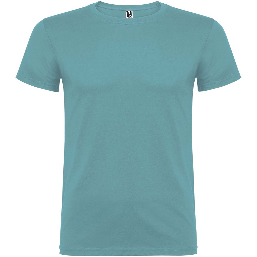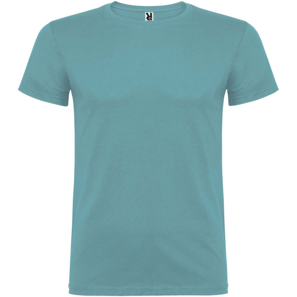 Kurzärmeliges T-Shirt mit doppellagigem Rundhalsausschnitt aus Elasthan, hergestellt aus mit Seitennähten. Verstärkte und verdeckte Nähte am Kragen. Herausnehmbares Etikett. Das Modell ist 120 cm groß und trägt Größe 5/6.