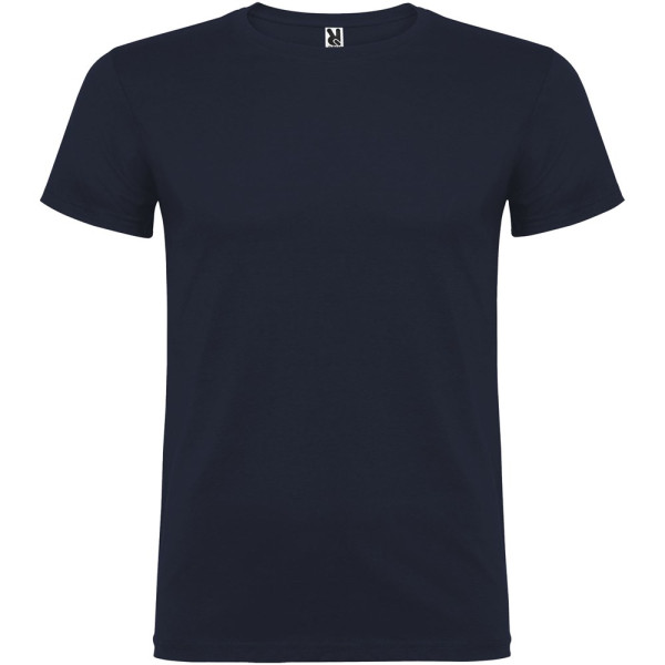 Kurzärmeliges T-Shirt mit doppellagigem Rundhalsausschnitt aus Elasthan, hergestellt aus mit Seitennähten. Verstärkte und verdeckte Nähte am Kragen. Herausnehmbares Etikett. Das Modell ist 120 cm groß und trägt Größe 5/6.