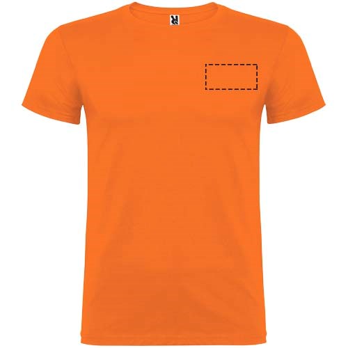 Kurzärmeliges T-Shirt mit doppellagigem Rundhalsausschnitt aus Elasthan, hergestellt aus mit Seitennähten. Verstärkte und verdeckte Nähte am Kragen. Herausnehmbares Etikett. Das Modell ist 120 cm groß und trägt Größe 5/6.