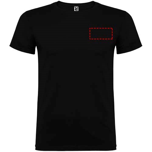 Kurzärmeliges T-Shirt mit doppellagigem Rundhalsausschnitt aus Elasthan, hergestellt aus mit Seitennähten. Verstärkte und verdeckte Nähte am Kragen. Herausnehmbares Etikett. Das Modell ist 120 cm groß und trägt Größe 5/6.