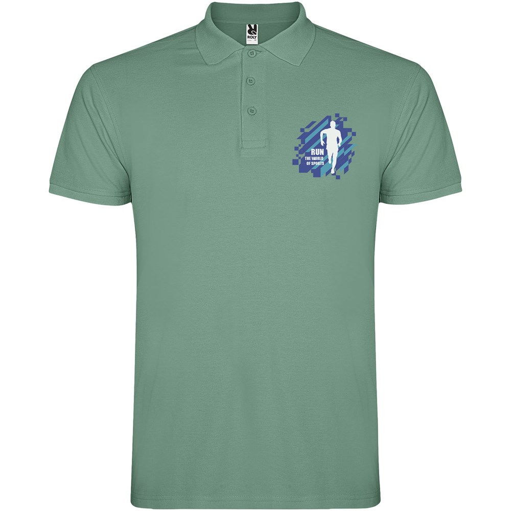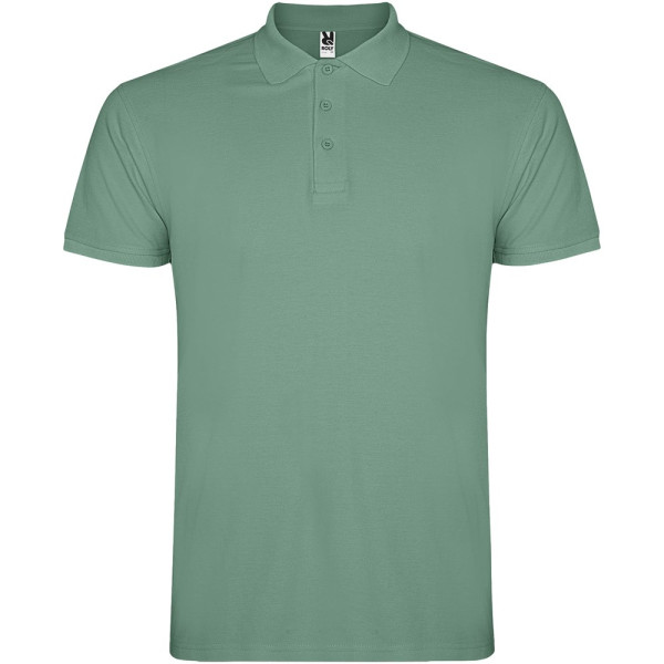 Kurzärmeliges Poloshirt für Herren. Verstärkte und verdeckte Nähte am Innenkragen. 1x1 Rippstrickbündchen an Ärmeln und Kragen. Seitennähte. 3-Knopfleiste und Seitenschlitze. Optionale Tasche. Herausnehmbares Etikett. Das Modell ist 185 cm groß und trägt Größe L.