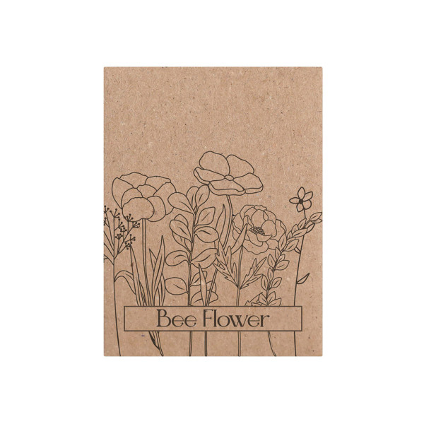Umschlag aus Kraftpapier mit einer Mischung aus Wildblumensamen, ideal als ökologisches Geschenk, das direkte Aussaat ermöglicht.