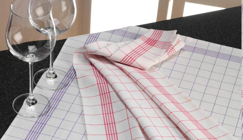 Hochwertige Halbleinen Geschirrtücher im Karomuster im 10er Pack, 50x70cm