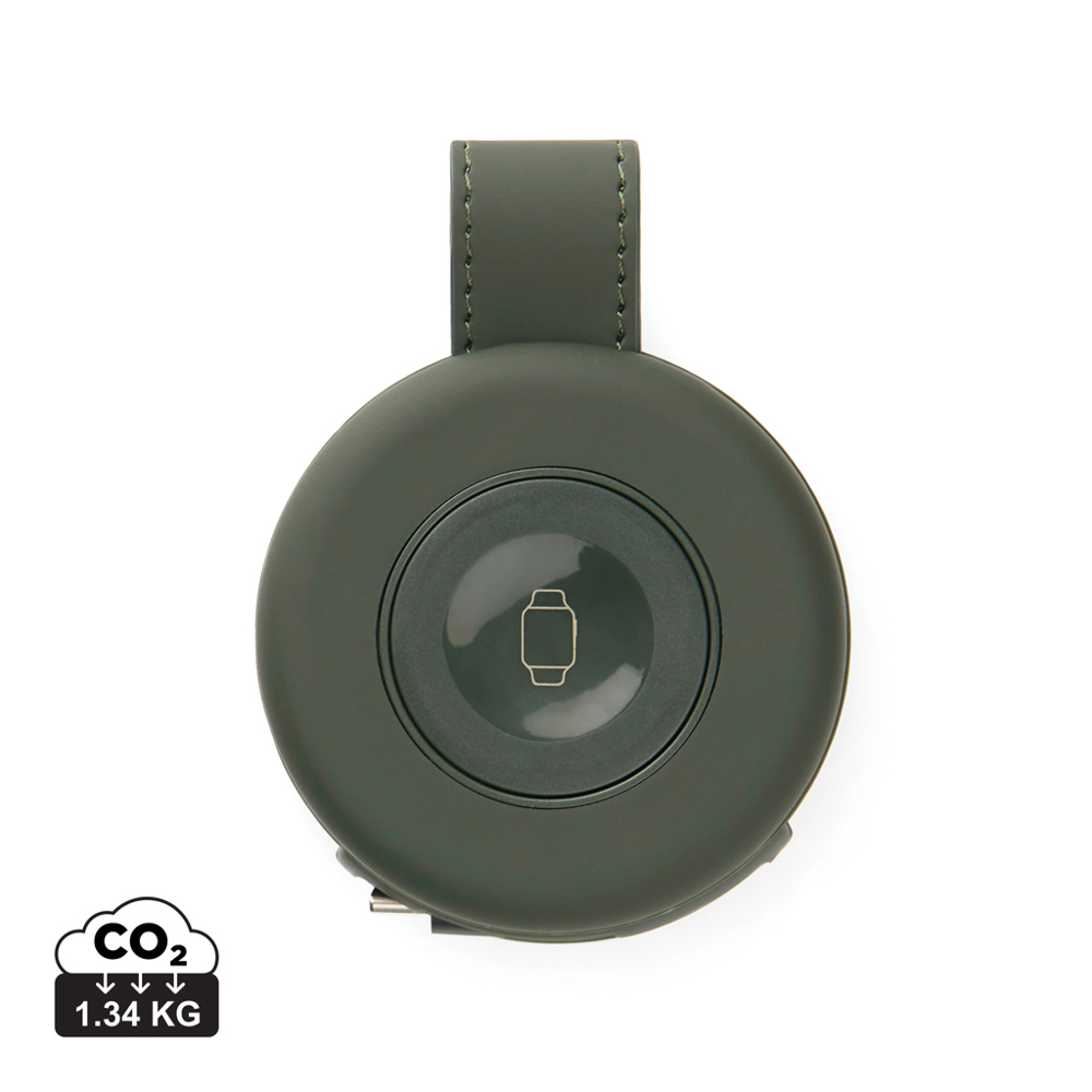 Das Baltimore 2-in-1-Wireless-Reiseladegerät wurde entwickelt, um Ihre alltäglichen Geräte schnell und mühelos mit Strom zu versorgen. Es ist leicht und funktional, beseitigt Kabelsalat und ersetzt mehrere Ladegeräte durch eine elegante Lösung. Hergestellt aus RCS-zertifiziert recyceltem ABS mit der klassischen matten PU-Beschichtung von Baltimore für einen minimalistischen Look. Kompakt und reisefertig kann es sowohl Ihr Telefon als auch Ihre Uhr gleichzeitig kabellos aufladen; perfekt für unterwegs. Dank Qi-Kompatibilität, präziser magnetischer Ausrichtung & Wireless-Charging bleiben Ihre Geräte perfekt positioniert und werden schnell aufgeladen. Kompatibel mit Qi-fähigen Geräten, einschließlich Smartphones und Apple- und Samsung-Uhren. Typ-C-Input: 5V/3A, 9V/2A. Wireless-Output: Smartphone 5W/7,5W/10W/15W (max), Uhr 2,5W (max). Gesamtanteil an recycelten Materialien: 36% bezogen auf das Gesamtgewicht des Artikels. Zertifiziert durch Control Union, CU1162221.