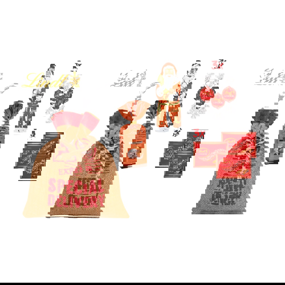 1 weihnachtliches Geschenkset nachhaltig verpackt im Jutebeutel mit Aufdruck „Special Delivery“. Gefüllt ist der Jutebeutel mit Köstlichkeiten von Lindt: 3 Lindt Lindor-Kugeln je 12,5 g, 1 Lindt Weihnachtsmann 40 g, 1 Beutel Lindt Weihnachtsmandeln 100 g (gerösteten Mandeln in Gianduja Milchschokolade und Vollmilchschokolade) und 3 Lindt Naps Lindor je 7,3 g. • Der Jutebeutel kann mit einem Anhänger 4c veredelt werden. Das Set „Alles Jute natürlich No. 3“ kann optional für den Postversand an Mitarbeiter und Kunden einzeln mit Grußkarte im Versandkarton konfektioniert werden. Ein köstlicher Weihnachtsgruß, natürlich nachhaltig verpackt!