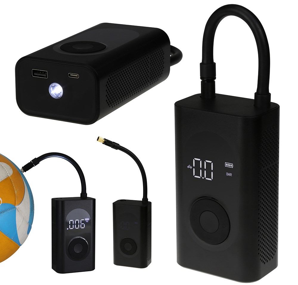 Mobile kabellose Elektro-Luftpumpe mit Hochdruck-Röhre. Ideal zum schnellen und bequemen Aufpumpen von Fahrradreifen oder Bällen. Technische Features wie die Digitalanzeige zur Überwachung des Reifendrucks und der Akku-Ladung, intelligenter Druck-Sensor mit Autostop-Funktion und vielen Voreinstellungen für eine simple Bedienung machen Bike Pump zum perfekten Begleiter für Radtouren, Reisen oder Ausflüge. Ein raffiniertes Design mit platzsparender Integration der Hochdruck-Röhre macht Bike Pump kompakt und leicht. Mit praktischer Taschenlampen-Funktion, drei Licht-Modi, integrierter Powerbank mit 2.000 mAh, wiederaufladbarem Akku und vier verschiedenen Aufsätzen für unterschiedliche Ventiltypen. Ein tolles Werbemittel mit individuellem Logo-Print.