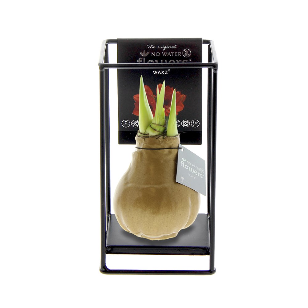 Wie fantastisch wäre es, einmal ein luxuriöses, wachsendes und blühendes Geschenk zu überreichen? Machen Sie sich mit unseren lebendigen No Water Flowers® vertraut, die für ihre einzigartigen handgefertigten Wachs-Amaryllis-Zwiebeln bekannt sind. Diese speziell ausgewählten und getesteten Amaryllis-Zwiebeln verfügen über genug Energie, um ohne Wasser zu wachsen und zu blühen. Authentische No Water Flowers® haben kurze Blütenstiele, fallen nicht um und blühen garantiert. Jede No Water Flowers® wird sorgfältig gereinigt und perfekt gewachst. Durch das Platzieren der No Water Flowers® in den Metal Formz erhält diese Blumenzwiebel ein luxuriöses und industrieller Erscheinungsbild. Die Original No Water Flowers® sind leicht an dem quadratischen Etikett zu erkennen, das an der Zwiebel angebracht ist.