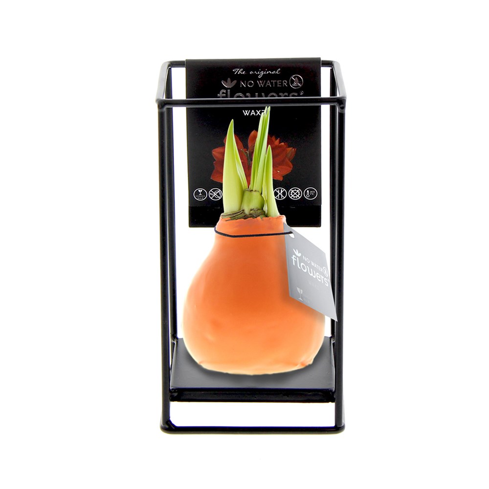 Wie fantastisch wäre es, einmal ein luxuriöses, wachsendes und blühendes Geschenk zu überreichen? Machen Sie sich mit unseren lebendigen No Water Flowers® vertraut, die für ihre einzigartigen handgefertigten Wachs-Amaryllis-Zwiebeln bekannt sind. Diese speziell ausgewählten und getesteten Amaryllis-Zwiebeln verfügen über genug Energie, um ohne Wasser zu wachsen und zu blühen. Authentische No Water Flowers® haben kurze Blütenstiele, fallen nicht um und blühen garantiert. Jede No Water Flowers® wird sorgfältig gereinigt und perfekt gewachst. Durch das Platzieren der No Water Flowers® in den Metal Formz erhält diese Blumenzwiebel ein luxuriöses und industrieller Erscheinungsbild. Die Original No Water Flowers® sind leicht an dem quadratischen Etikett zu erkennen, das an der Zwiebel angebracht ist.
