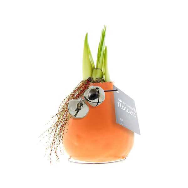 No Water Flowers® sind ein luxuriöses, wachsendes und blühendes Geschenk. Die lebenden No Water Flowers® sind bekannt für ihre einzigartigen handgefertigten Wachs-Amaryllis-Zwiebeln. Diese speziell ausgewählten und getesteten Amaryllis-Zwiebeln haben genug Energie, um ohne Wasser zu wachsen und zu blühen. Authentische No Water Flowers® haben relativ kurze Blütenstiele, fallen nicht um und blühen garantiert. Jede No Water Flowers® wird sorgfältig gereinigt und perfekt gewachst. Dadurch erhält die Blumenzwiebel ein zeitgemäßes und modisches Aussehen. Diese No Water Flowers® haben ein klingelndes Glöckchen, das an der Zwiebel befestigt ist. Wie lustig und auffällig ist es, mit einem klingelnden Geräusch hereinzukommen? Das macht Sie auf jeden Fall bemerkbar. Die No Water Flowers® sind das perfekte Weihnachtsgeschenk.