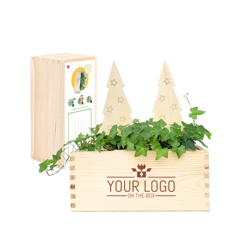 Verschenken Sie Pflanzen! Diese robuste Holzkiste mit Pflanzen ist ein nachhaltiges Geschenk mit einem 3-in-1-Design. Denn die holzbox ist nicht nur der Pflanzentopf, sondern auch die Versandverpackung und das Wasserreservoir für die Pflanzen. Es ist ein verpackungsfreies Geschenk und dank des cleveren Bewässerungssystems muss sich der Beschenkte nicht um die Pflanzen kümmern. Wir gravieren Ihr Logo oder einen Slogan Ihrer Wahl auf die box. Mit diesem umweltfreundlichen Geschenk werden Sie bei Ihren Kunden und Kollegen monatelang im Rampenlicht stehen. Und was dieses Geschenk ganz besonders macht: Bei der Herstellung dieses Geschenks helfen uns Menschen, die auf dem Arbeitsmarkt benachteiligt sind. So überraschen Sie nicht nur die Beschenkten mit diesem grünen Geschenk, auch die Macher werden sich über Ihr Geschenk freuen!